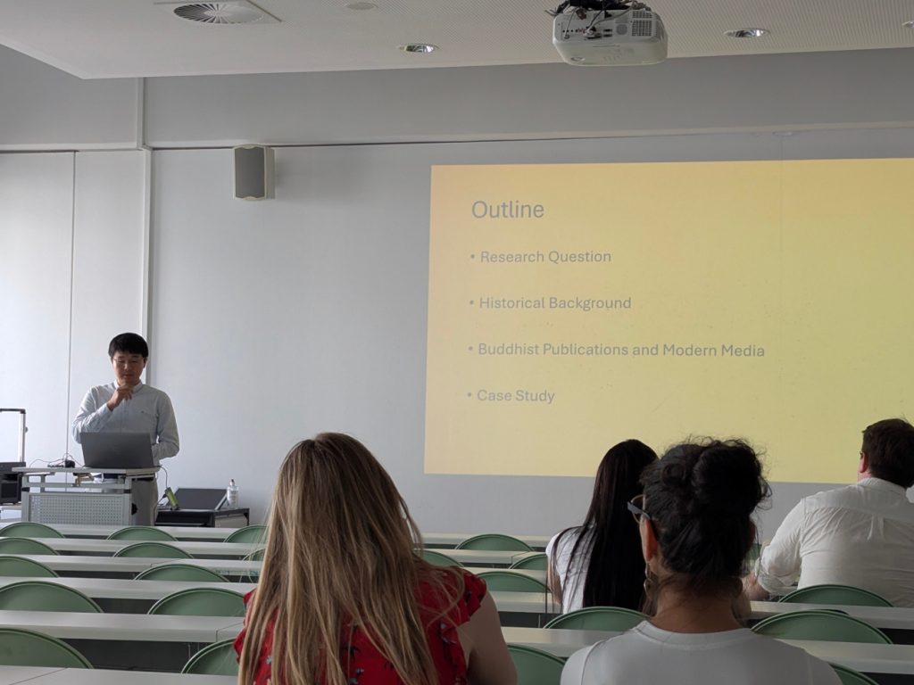 As part of Panel 14 “East Asian Buddhism (3)”, chaired by Prof. Anna ANDREEVA (Ghent University), Ming-Feng WU delivered his findings on “Future Through Buddhist Terminology: Modern Chinese Buddhist Discourse on Two Truths” on August 15.