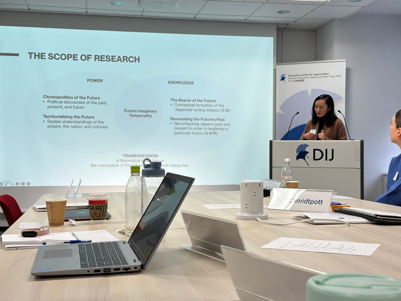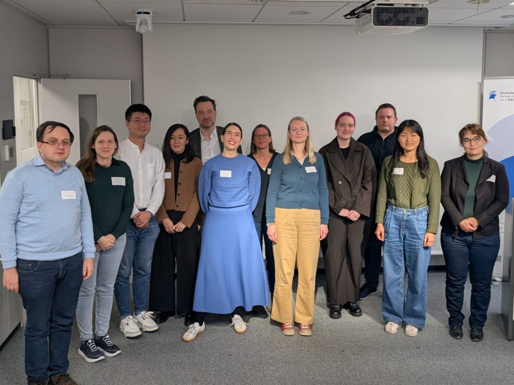 The final workshop of the series took place at the Deutsches Institut für Japanstudien (DIJ) in Tokyo on November 13, 2025. The event was hosted by Dr. Nicole M. MÜLLER, who facilitated the discussions and brought in perspectives from the institute’s ongoing projects, together with her colleagues Dr. Celia SPODEN, Dr. Dolf-Alexander NEUHAUS, and Dr. Harald KÜMMERLE. Prof. Mariko JACOBY from Hitotsubashi University in Kunitachi also joined the workshop. Representing the RTG were Prof. Dr. Katja SCHMIDTPOTT, Simone KORTUNG, Dr. Aya HINO, and Youlim KIM. The workshop’s programme may be accessed here.